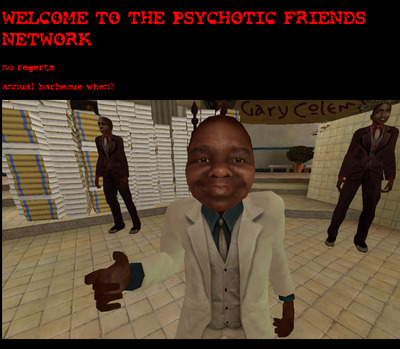 I have a few domain names lying around, one of which is psychoticfriends.net. For the uninitiated, this is a reference to the "Psychotic Friends Network" that is briefly mentioned in one level (specifically Thursday) of the 2003 PC game POSTAL 2. I use the domain to host a Matrix server, but wanted a placeholder webpage as an Easter egg for anyone who bothers to plug the domain into their browser. The whole page is just a title, a couple of inside jokes from the game, and a screenshot of Gary Coleman's cameo. The text is in the "Smash" font, which is the font used in promotional material for the game. Since I put the site up, I've had issues with the font rendering on mobile, and only just took the time to sort it out!